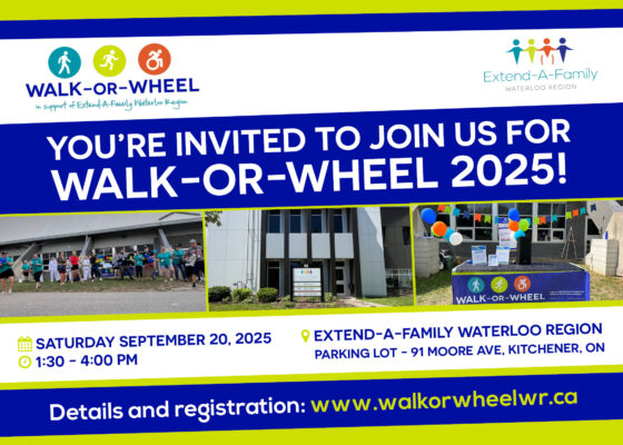 You’re invited to join us for WALK-OR-WHEEL 2025, in support of Extend-A-Family Waterloo Region!